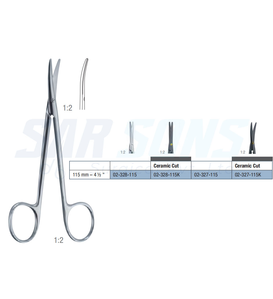115 mm – 4 ½ " 02-327-115K Baby-Metzenbaum Enucleation Scissors Curved Blunt/Blunt Ceramic Cut