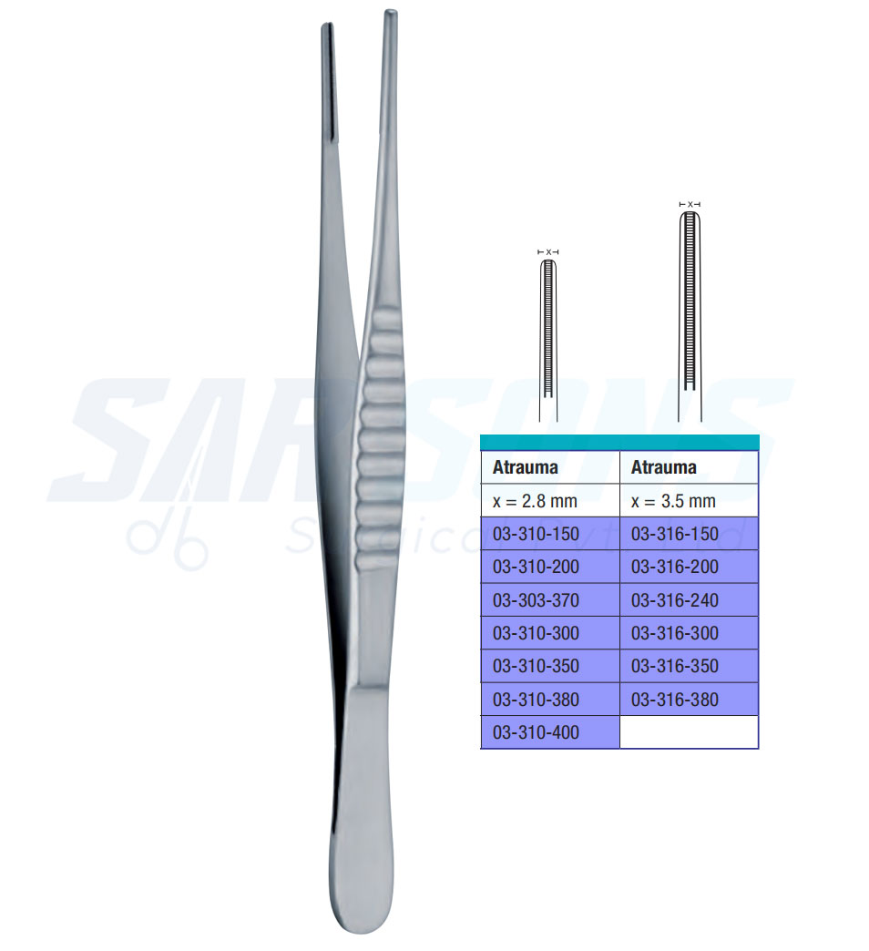 150 mm – 6 " 03-310-150 De Bakey Atraumatic Tissue Forceps ( x = 2.8 mm )