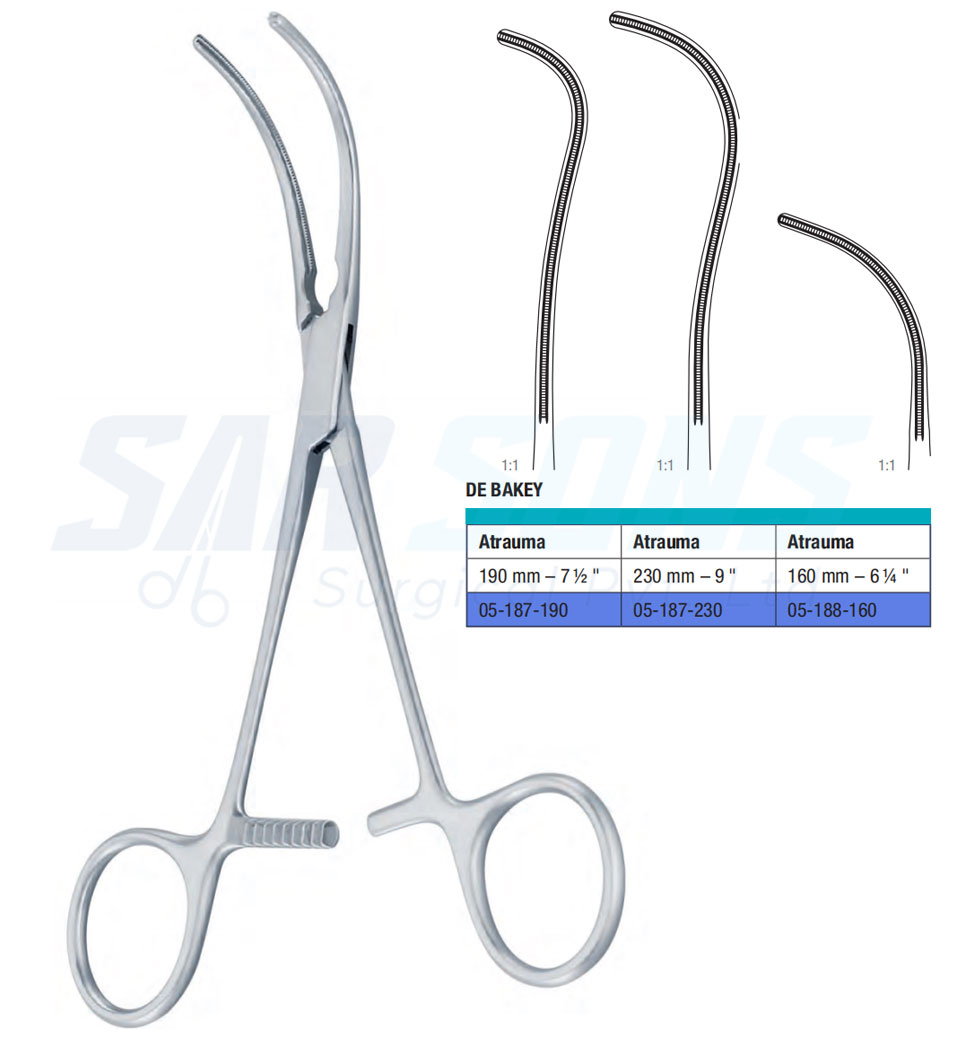 190 mm – 7 ½ " 05-187-190 De Bakey Vascular Forceps
