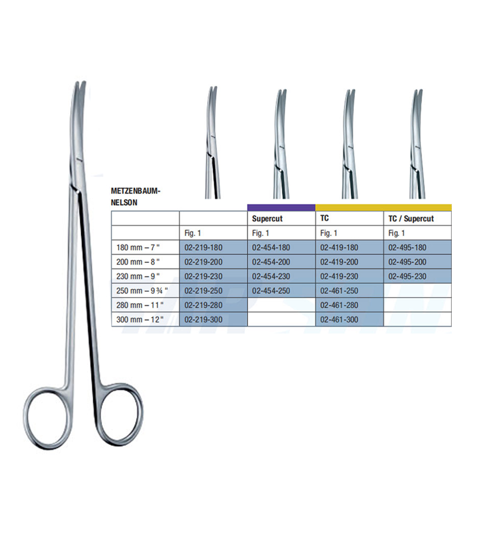 230 mm – 9 " 02-495-230 Metzenbaum-Nelson TC Supercut Curved Blunt/Blunt Fig.1