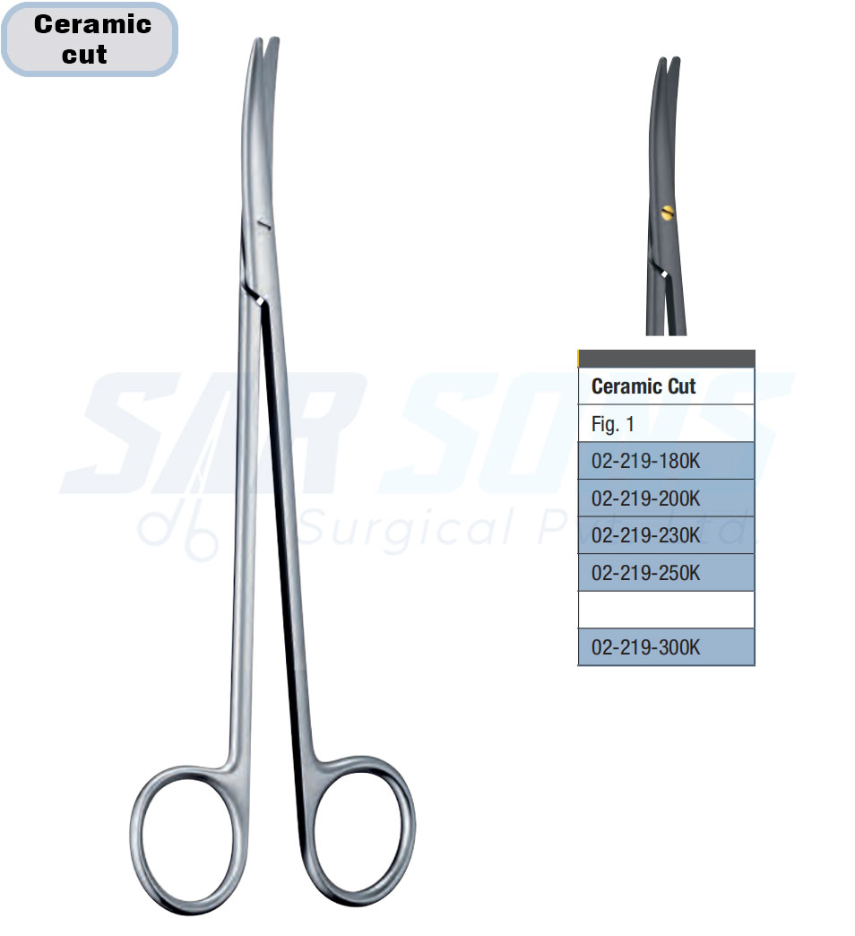 230 mm – 9 " 02-219-230K Metzenbaum-Nelson Operating Scissors Curved Ceramic Cut