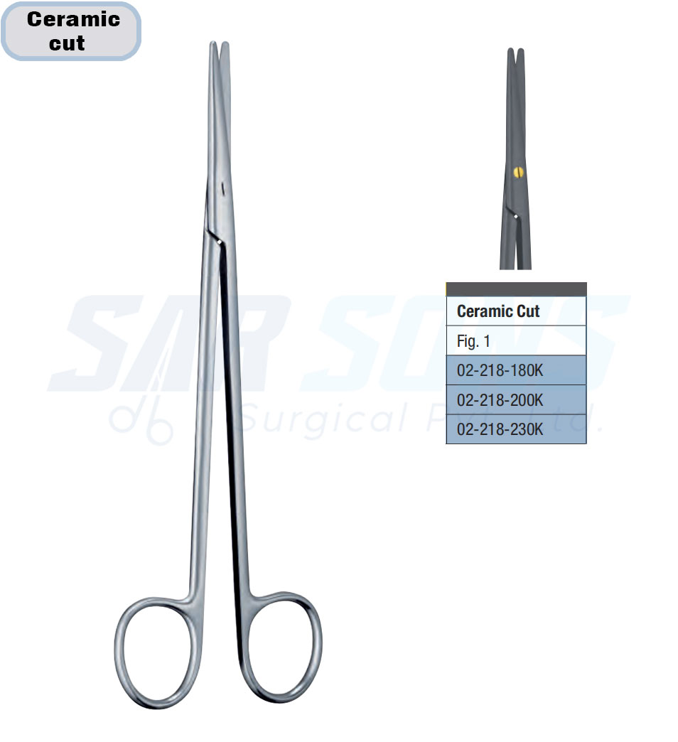 230 mm – 9 " 02-218-230K Metzenbaum-Nelson Operating Scissors Straight Blunt/Blunt Ceramic Cut