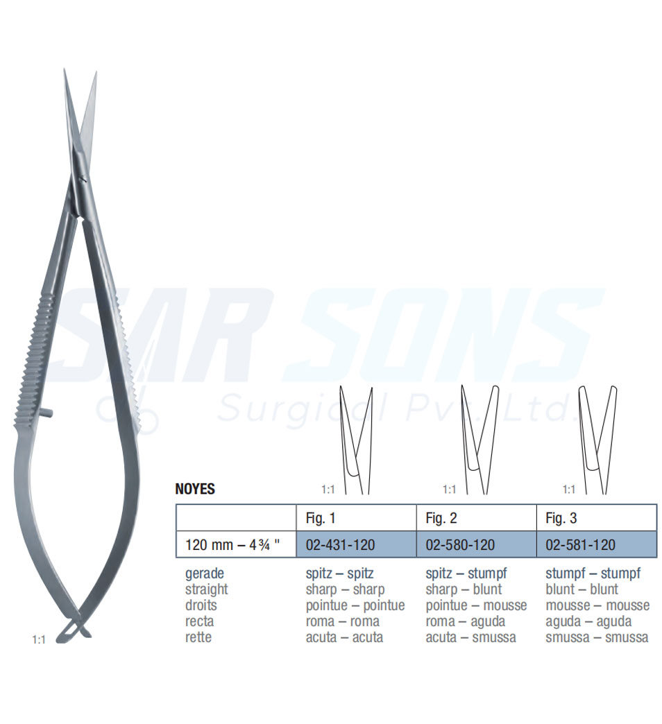 120 mm – 4 ¾ " 02-580-120 Noyes Micro Scissors Straight Sharp/Blunt