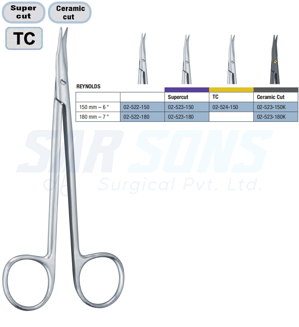 150 mm – 6 " 02-523-150 Reynolds Fine Scissors Curved Supercut