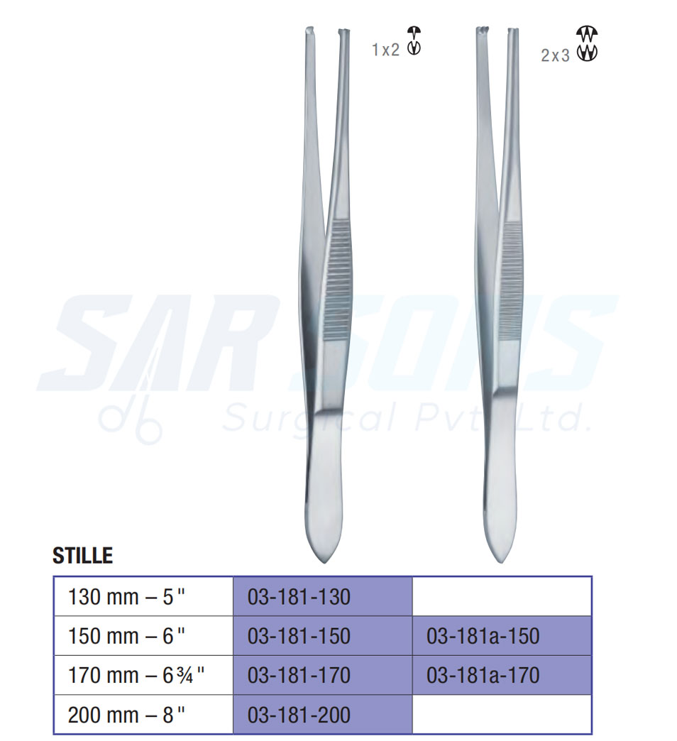 170 mm – 6 ¾ " 03-181-170 Stille Tissue Forceps 1 x 2