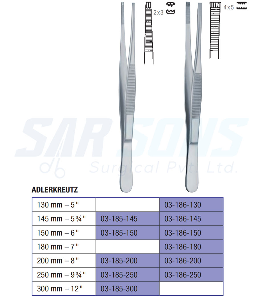 145 mm – 5 ¾ " 03-186-145 Adlerkreutz Tissue Forceps 4 x 5