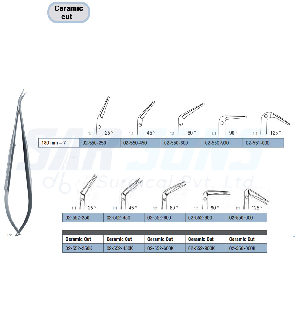 180 mm – 7 " 02-552-450K Castroviejo Corneal Artery Scissors Ceramic Cut 45°