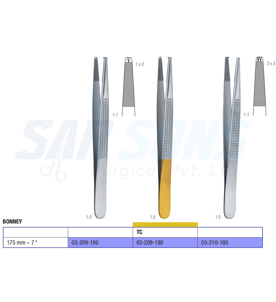 175 mm – 7 " 03-209-180 Bonney Tissue Forceps TC