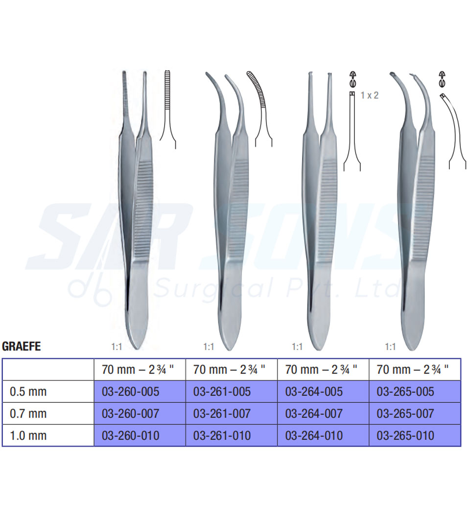 70 mm – 2 ¾ " 03-260-007 Graefe Iris Forceps 0.7 m
