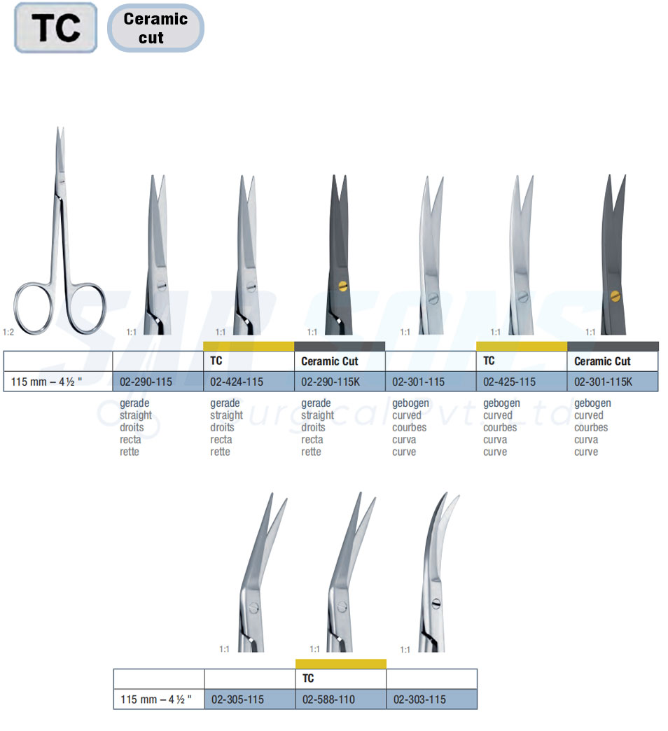 115 mm – 4 ½ " 02-290-115K Iris Scissors Straight Ceramic Cut
