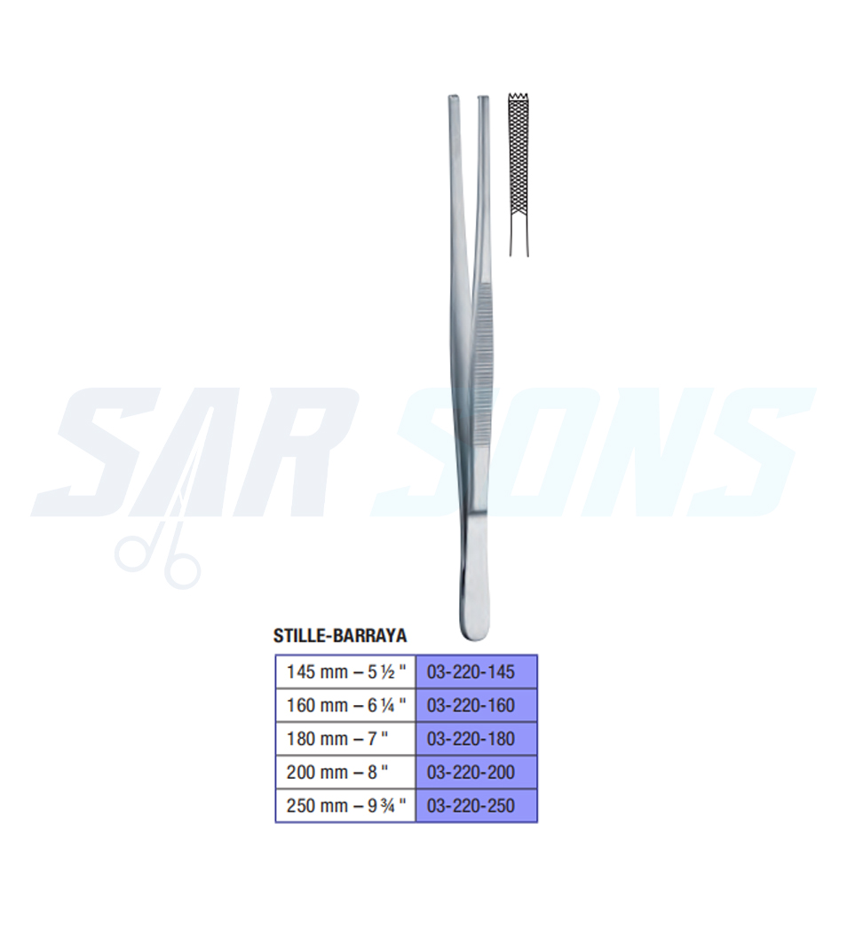 250 mm – 9 ¾ " 03-220-250 Stille-Barraya Tissue Forceps