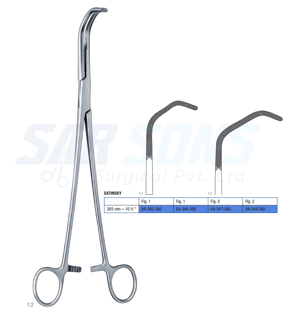 265mm 04-347-260 Satinsky Hemostatic Forceps Curved