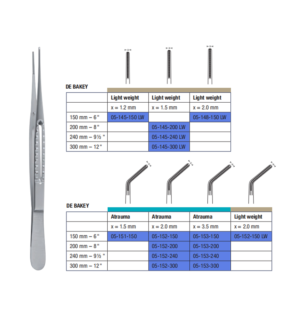 150 mm – 6 " 05-148-150 LW De Bakey Atraumatic Tissue Forceps LW