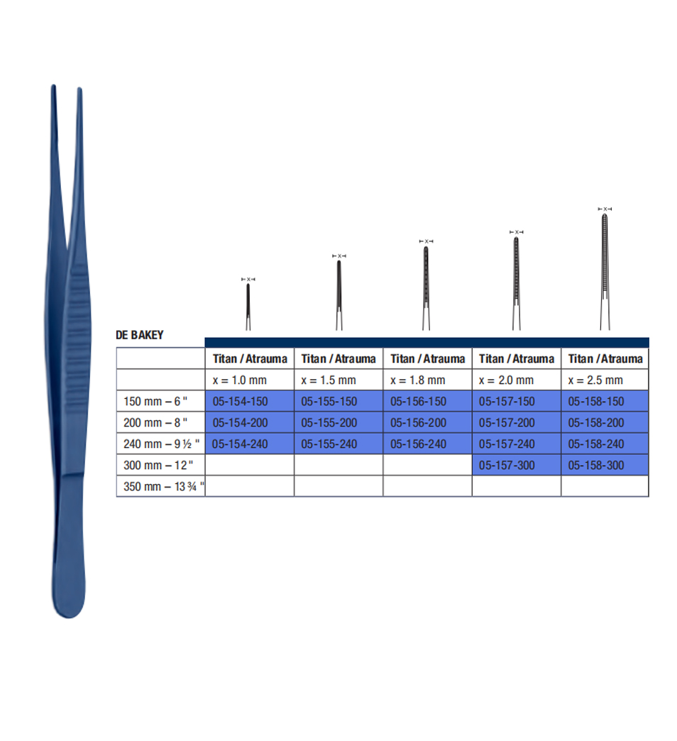 150 mm – 6 " 05-158-150 De Bakey Atraumatic Tissue Forceps Titan ( x = 2.5 mm )