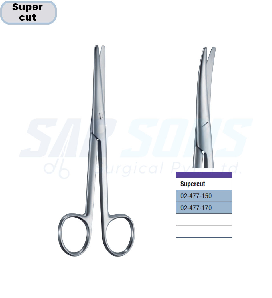 170 mm – 6¾" 02-477-170 Mayo-Stille Operating Scissors SuperCut Curved Blunt/Blunt