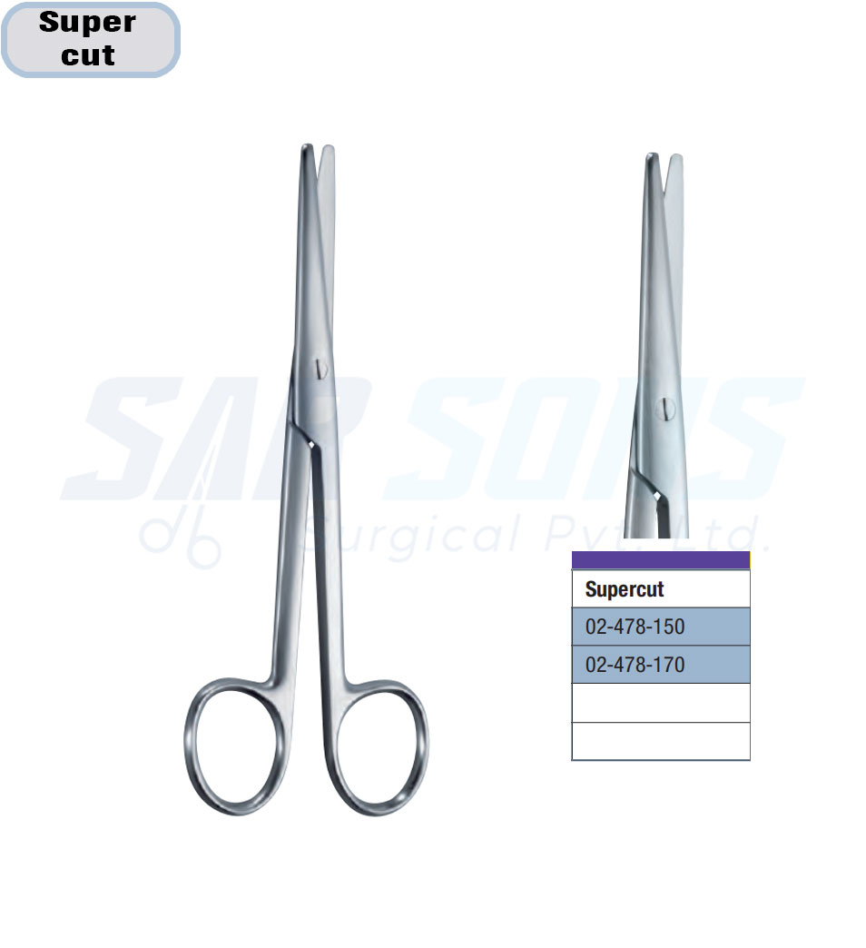 170 mm – 6¾" 02-478-170 Mayo-Stille Operating Scissors SuperCut Straight Blunt/Blunt