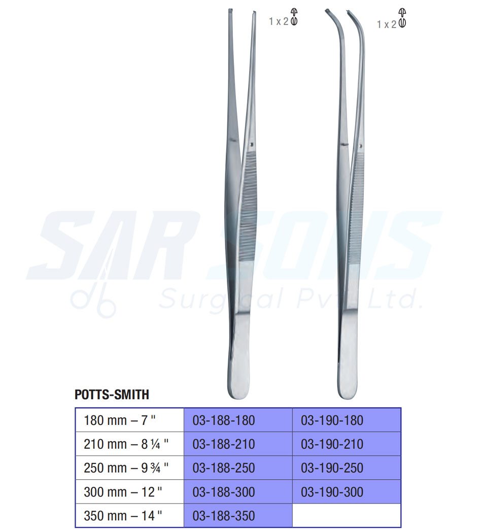 300 mm – 12 " 03-188-300 Potts-Smith Tissue Forceps Straight 1 x 2