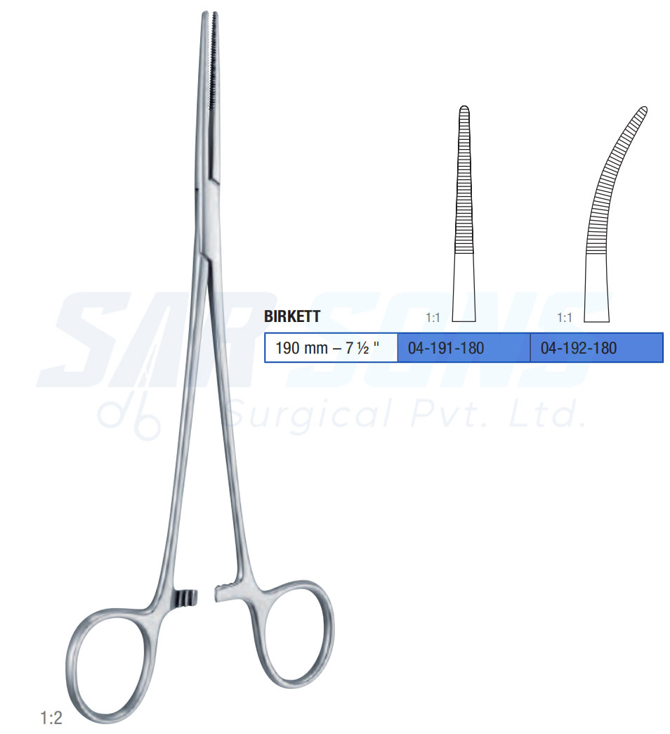 190mm 04-191-180 Birkett hemostatic forceps straight