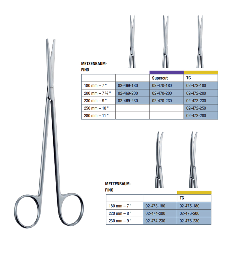 180 mm – 7 " 02-470-180 Metzenbaum-Fino Operating Scissors Straight Supercut Blunt/Blunt