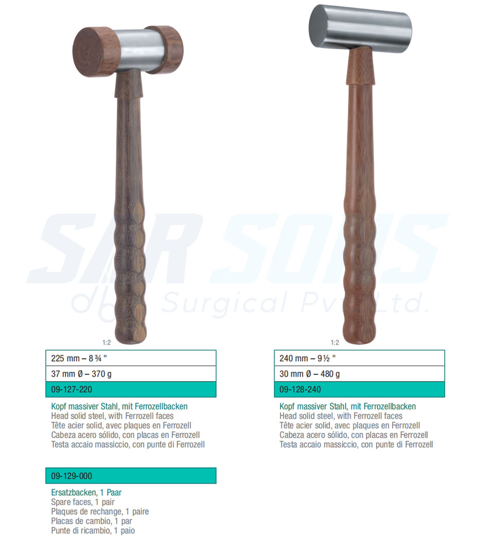 225 mm – 8 ¾ " 09-127-220 Head solid steel, with Ferrozell faces