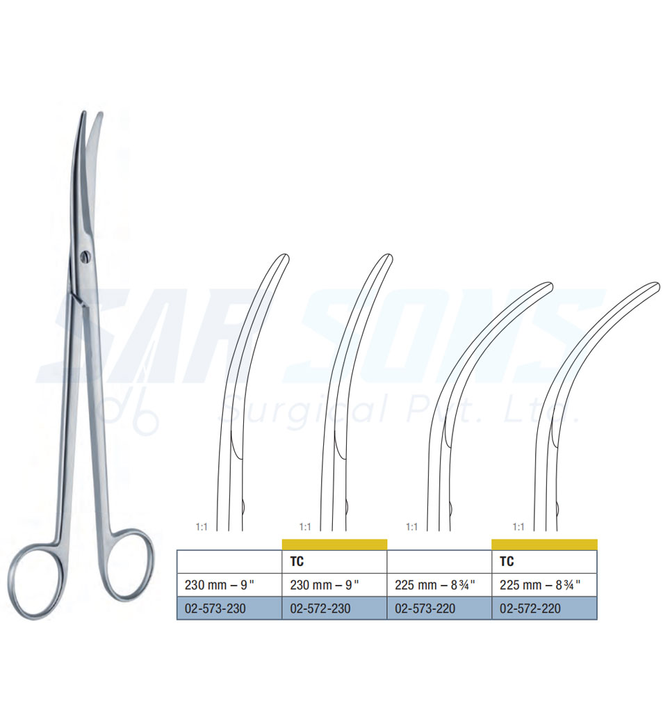 230 mm – 9 " 02-572-230 Parametrium Scissors Slightly Curved TC
