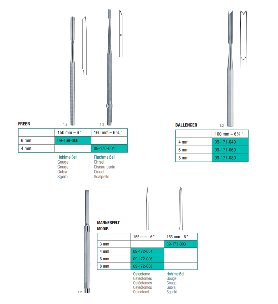 155 mm - 6 " 09-172-008 MANNERFELT MODIF. Osteotomes