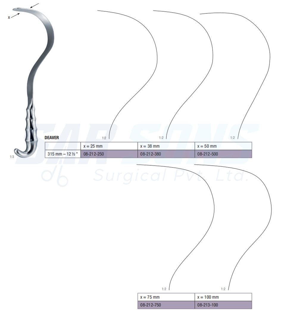 315 mm – 12 ½ " 08-212-500 Deaver Retractors