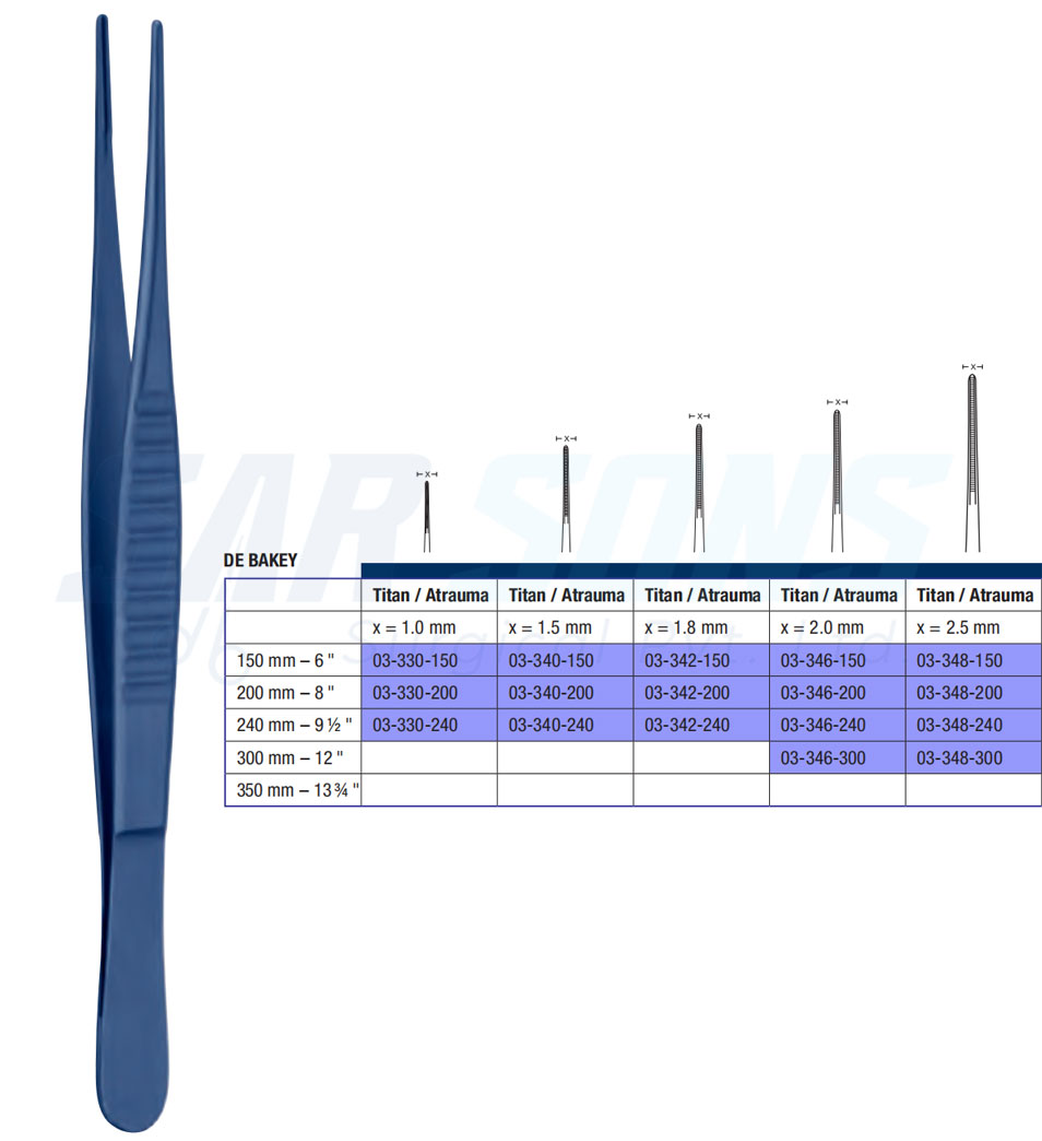 200 mm – 8 " 03-330-200 De Bakey Atraumatic Tissue Forceps Titan ( x = 1.0 mm )