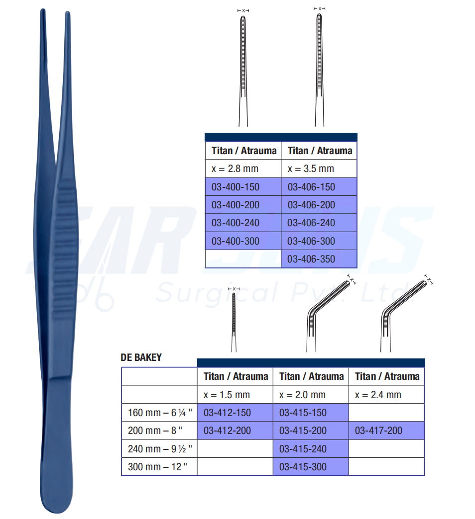 300 mm – 12 " 03-400-300 De Bakey Atraumatic Tissue Forceps Titan ( x = 2.8 mm )