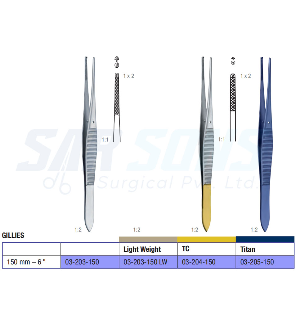 150 mm – 6 " 03-204-150 Gillies Tissue Forceps TC