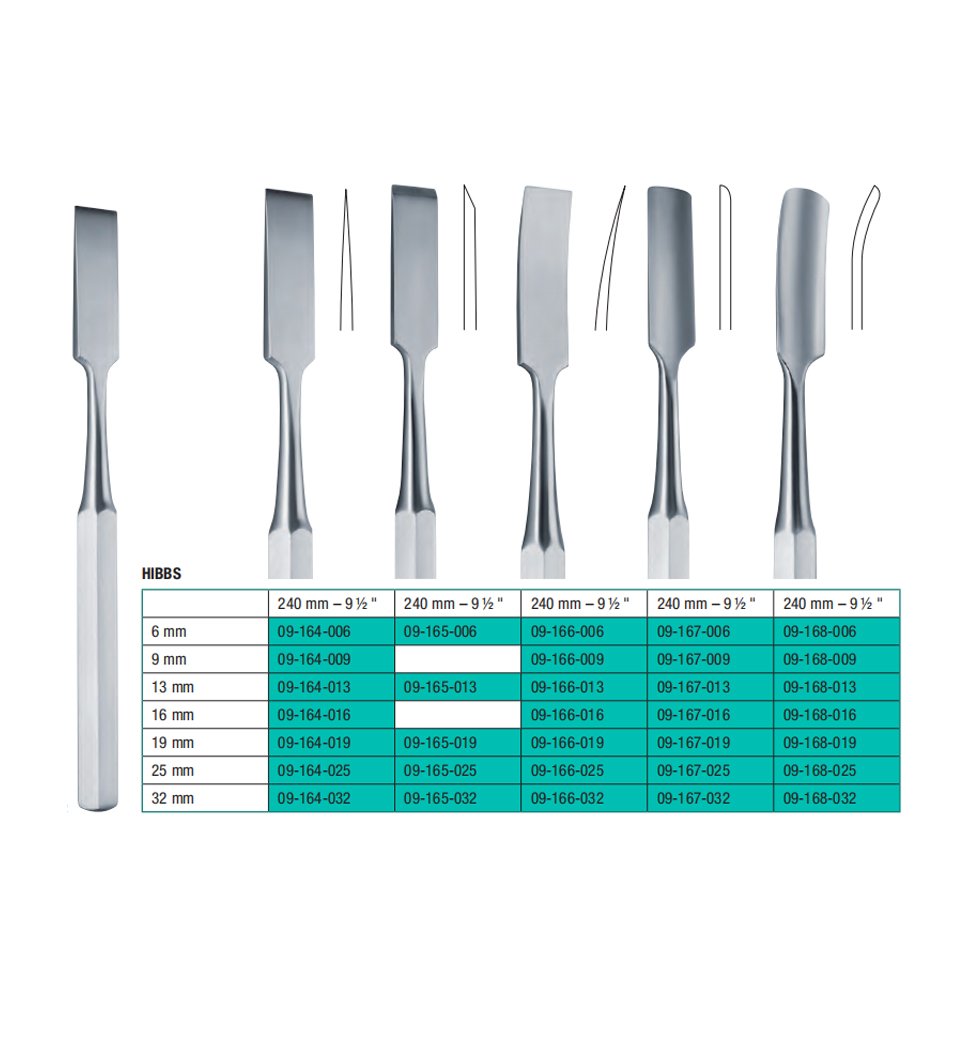 240 mm – 9 ½ " 09-168-009 Hibbs Bone Chisel