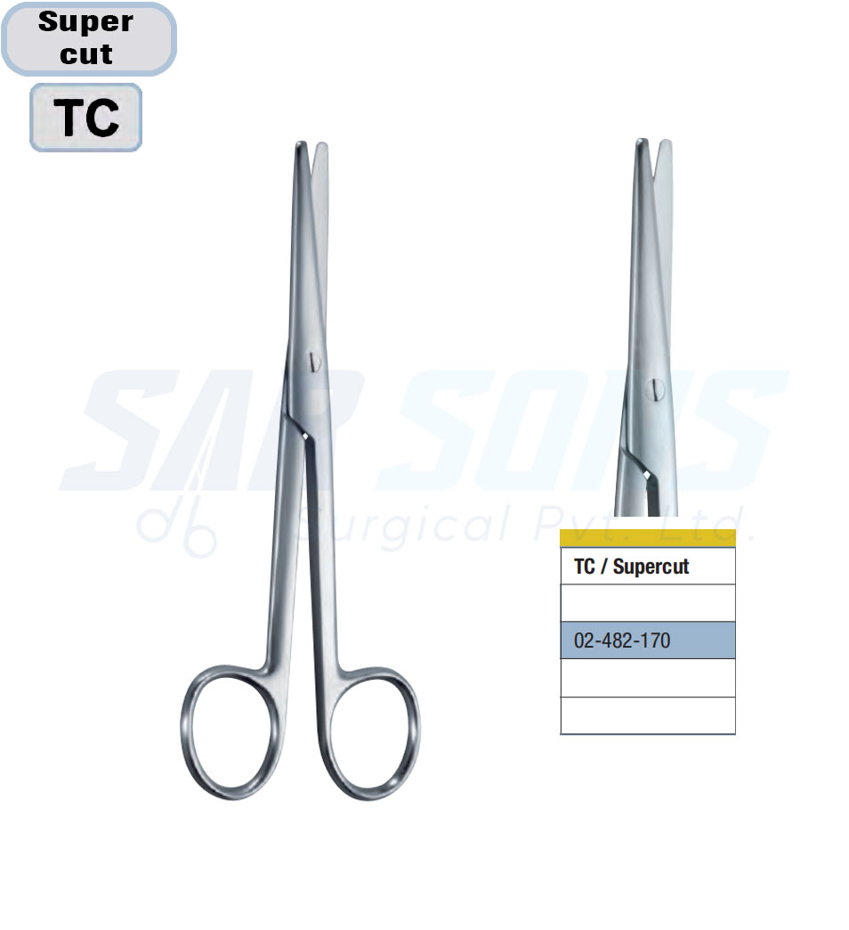 170 mm – 6¾" 02-482-170 Mayo-Stille Operating Scissors TC SuperCut Straight Blunt/Blunt