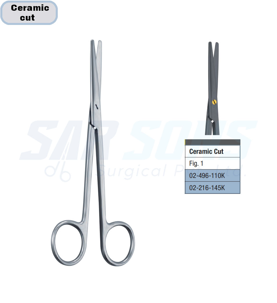 115 mm – 4 ½ " 02-496-110K Metzenbaum Operating Scissors Straight Ceramic Cut Blunt/Blunt
