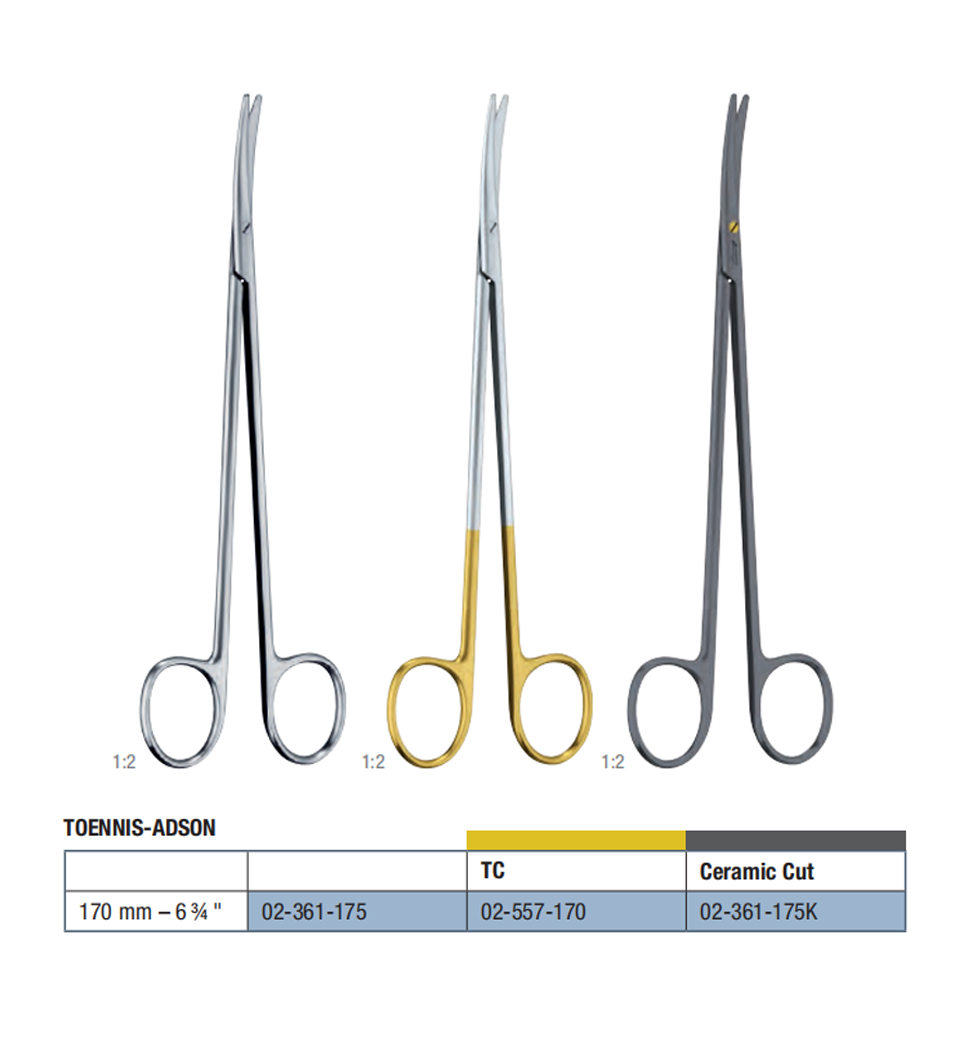 170 mm – 6 ¾ " 02-361-175K Toennis-Adson Tonsil Scissors Ceramic Cut